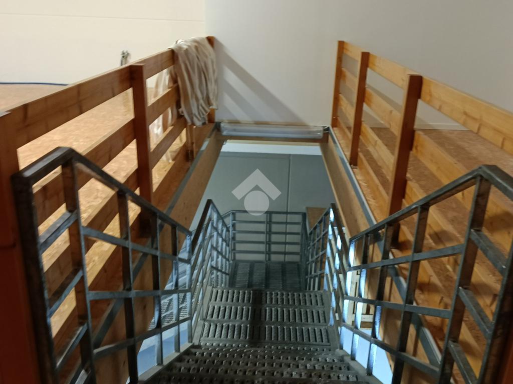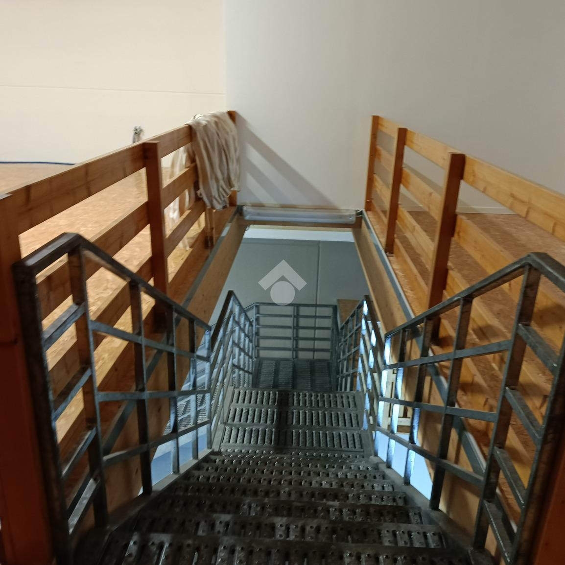il capannone e' su base rettangolare disposto su due piani speculari di 110 mq l'uno entrambi dotati di servizi igienici con antibagno.