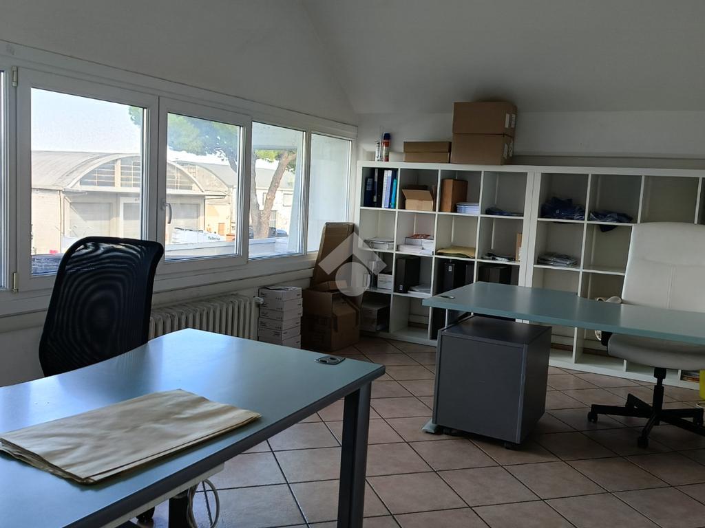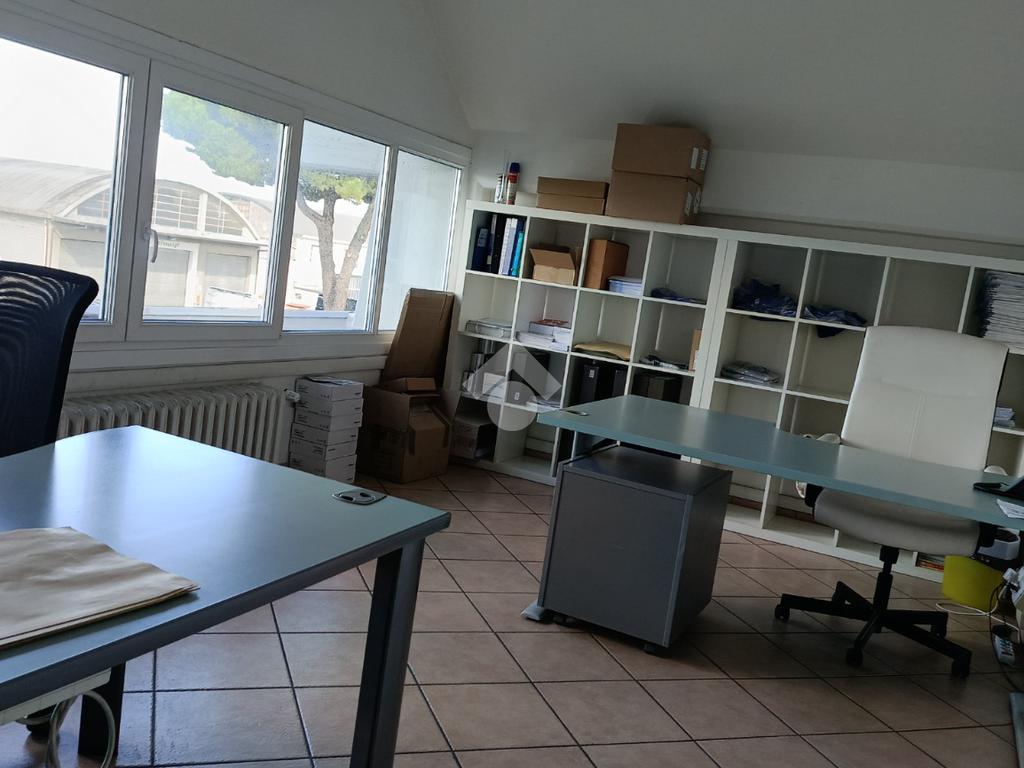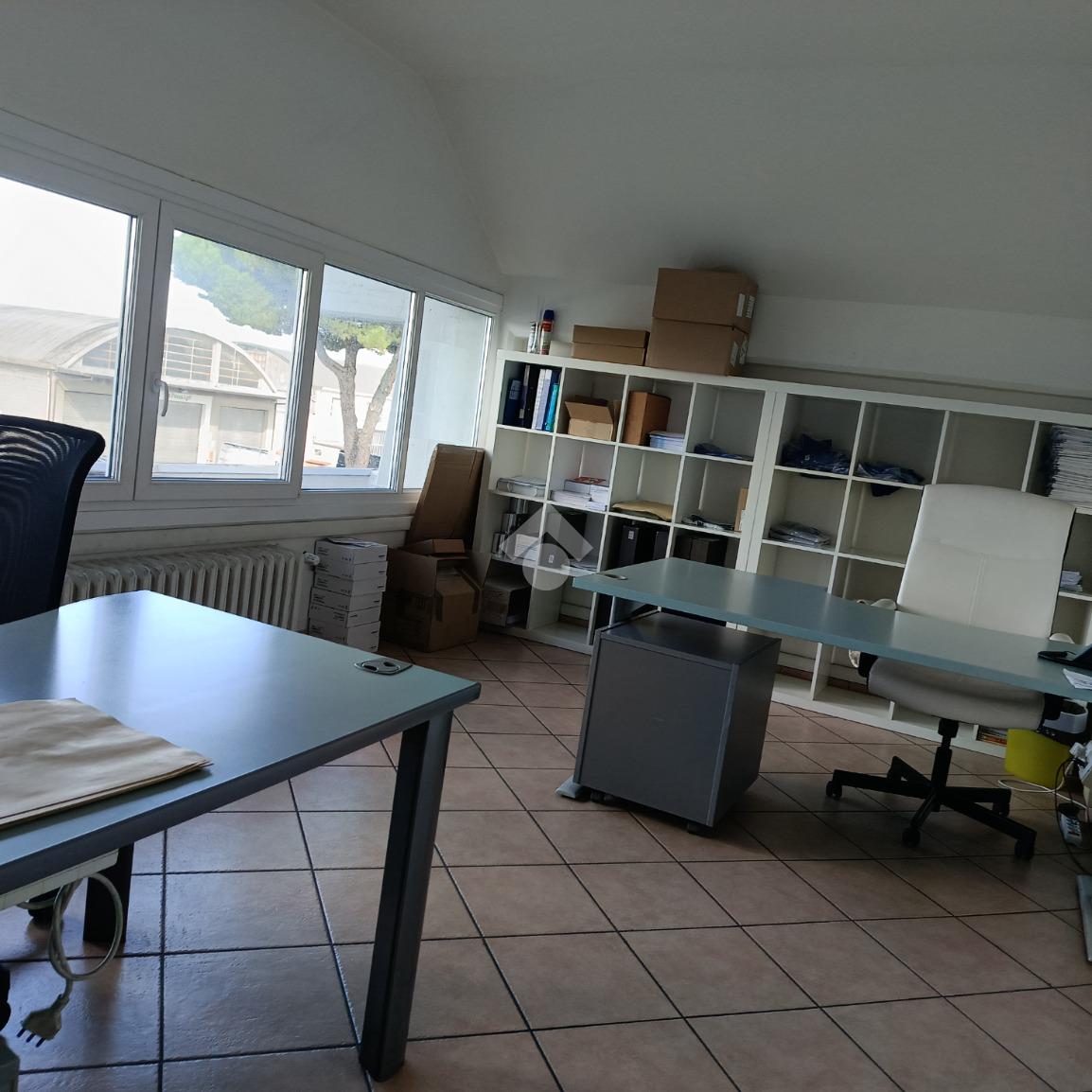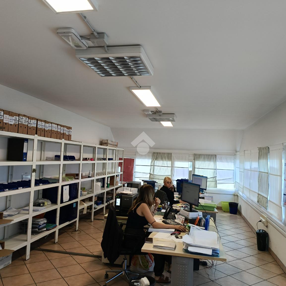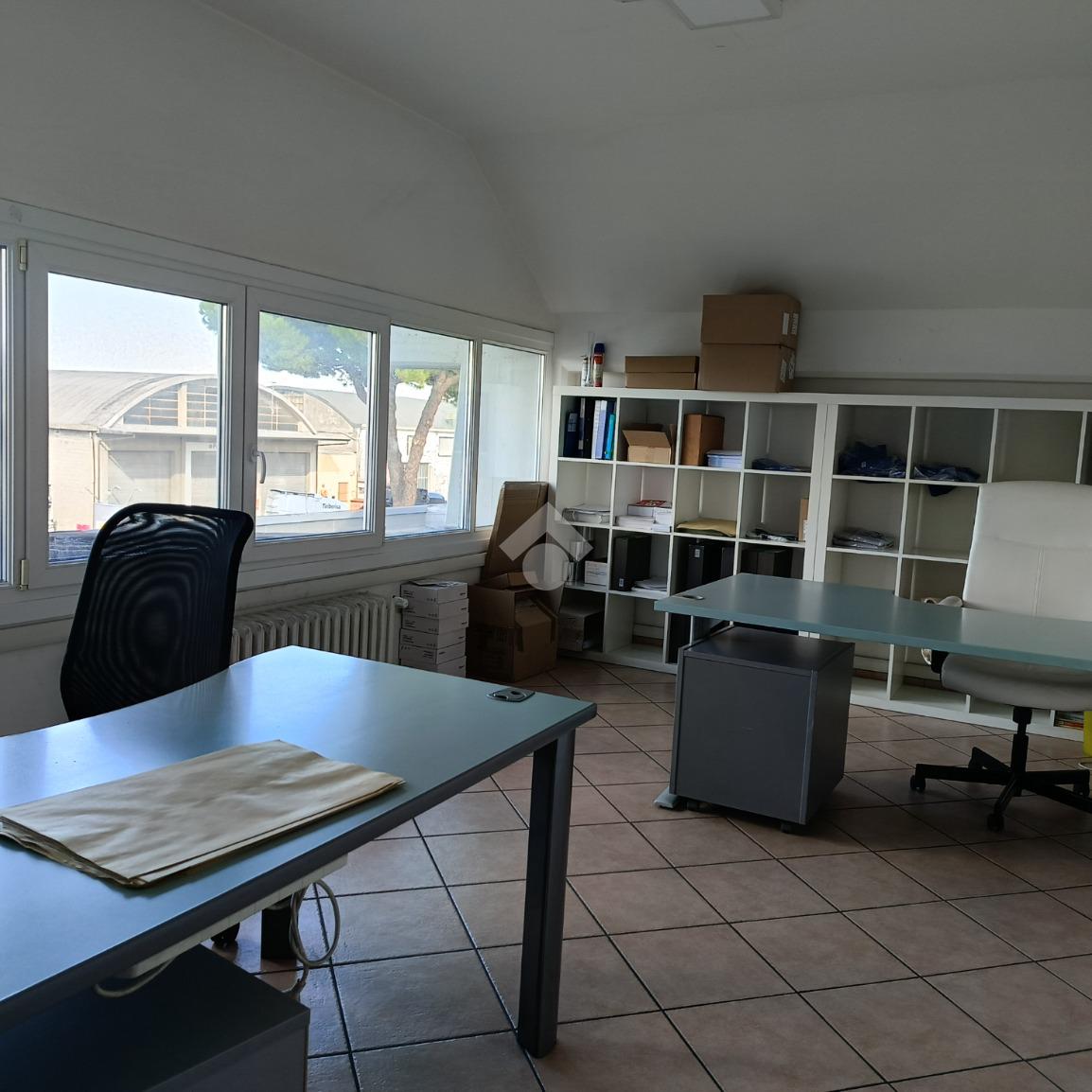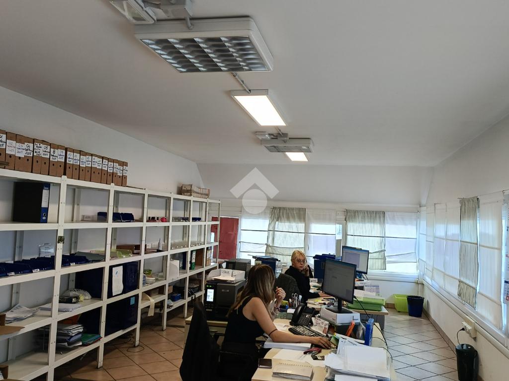 Il capannone e' su pianta rettangolare con altezza sotto trave di 7 metri , con superfice di1000 metri quadri e tre portelloni industiali 4m x 5 m , al piano superiore troviamo due servizi igienici e 100 metri di uffici.
