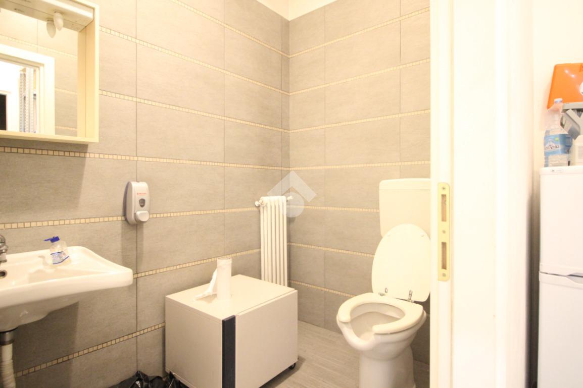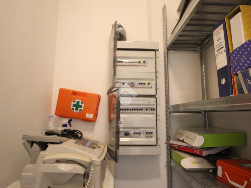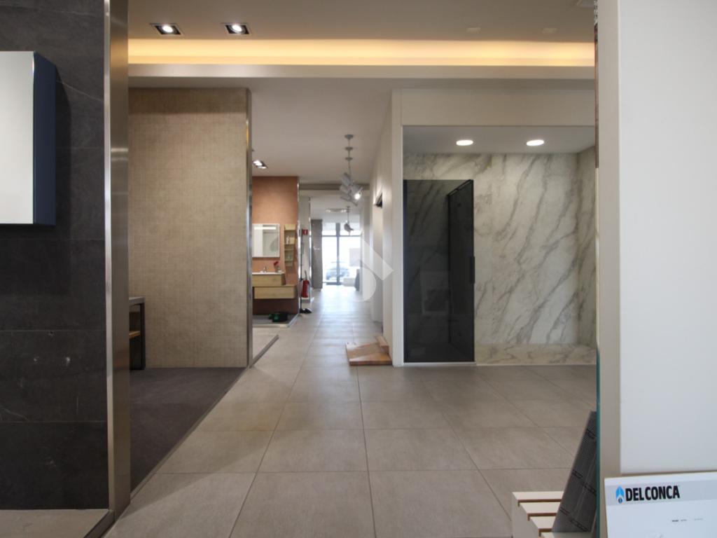 Il locale è disposto su pianta rettangolare con due ingressi l'ingresso posteriore è su area di carico e scarico e parcheggi condominiali.