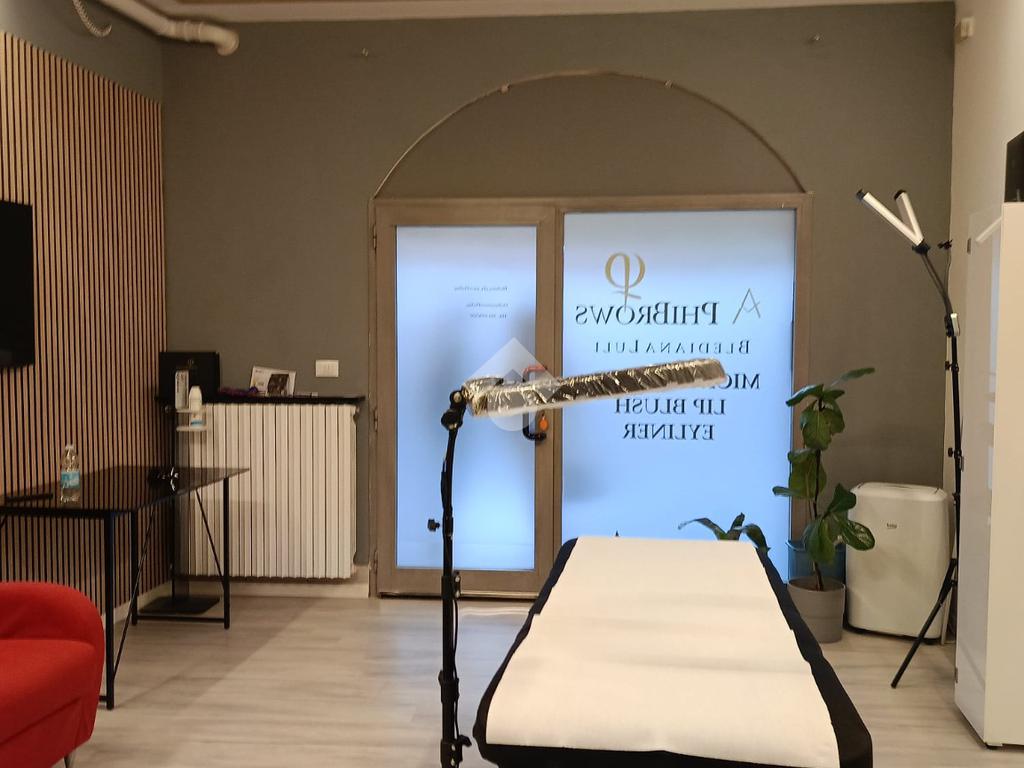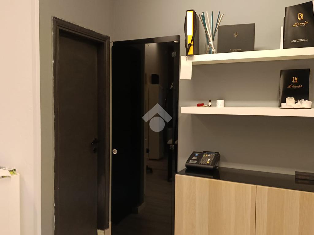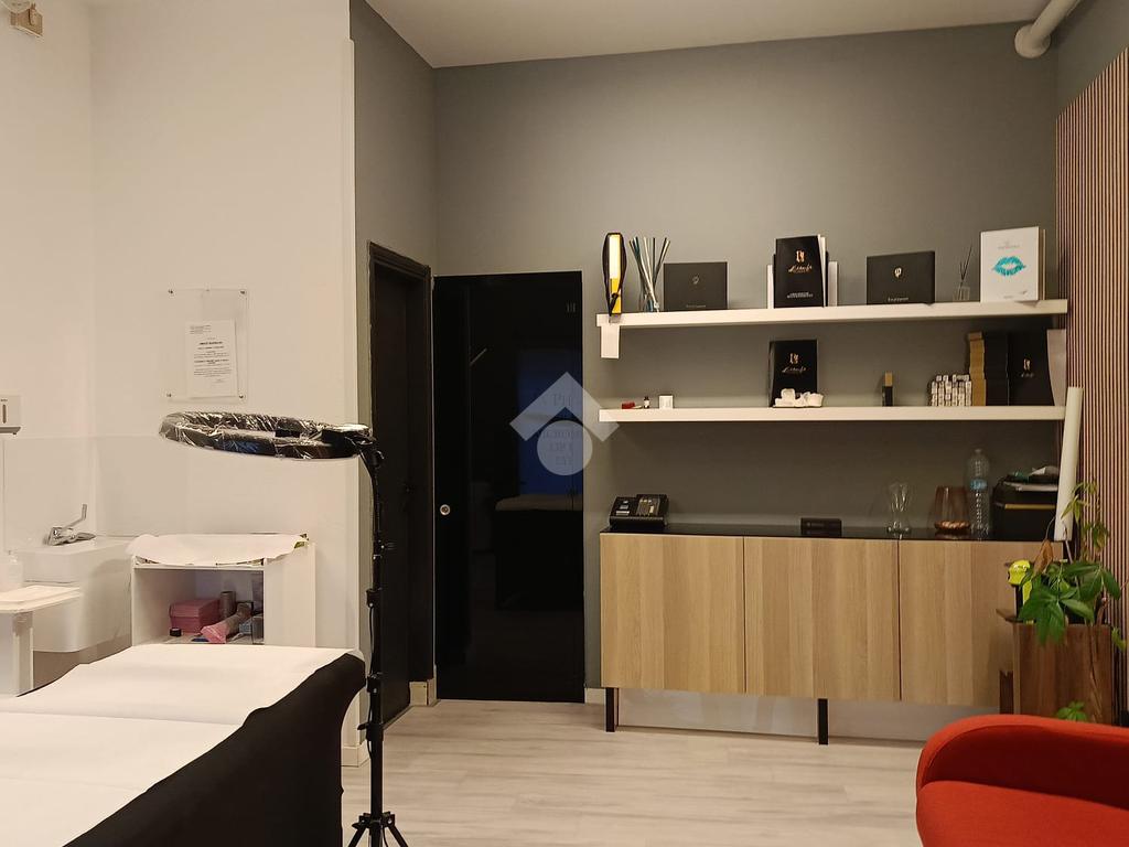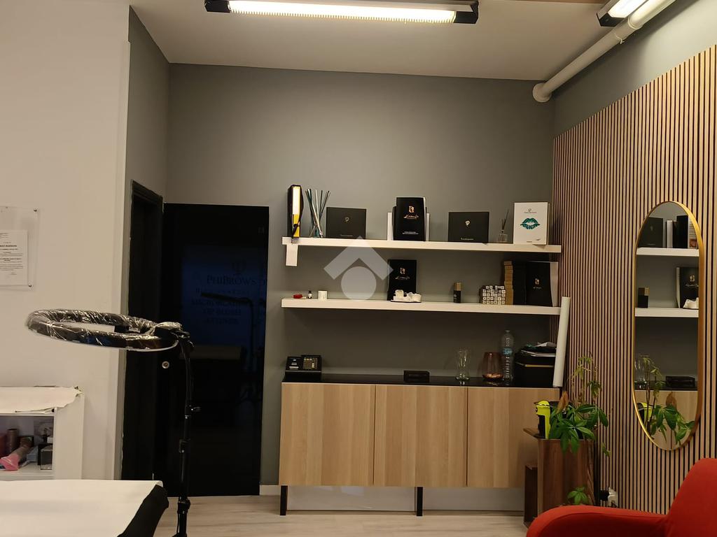Il negozio e' su pianta rettangolare , con presenza di bagno ed antibagno , recentemente ristrutturato e messo a norma per attivita' di estetista.