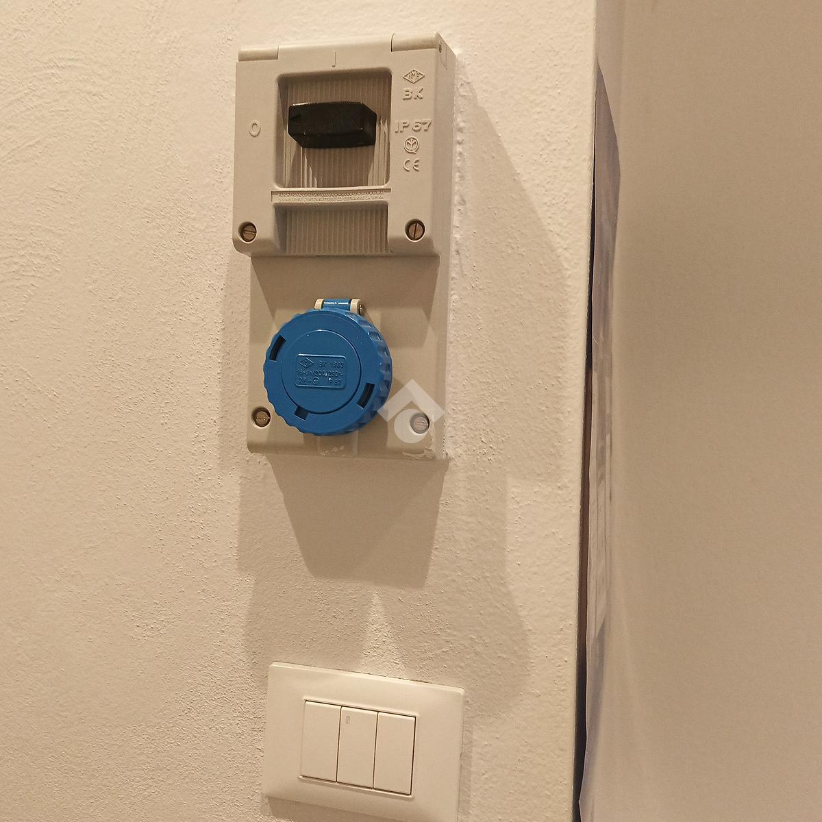 Presenza di impianto elettrico a norma certificato con corrente trifasica e di impianto di aspirazione forzata, sistema di raffrescamento e riscaldamento con pompa di calore.