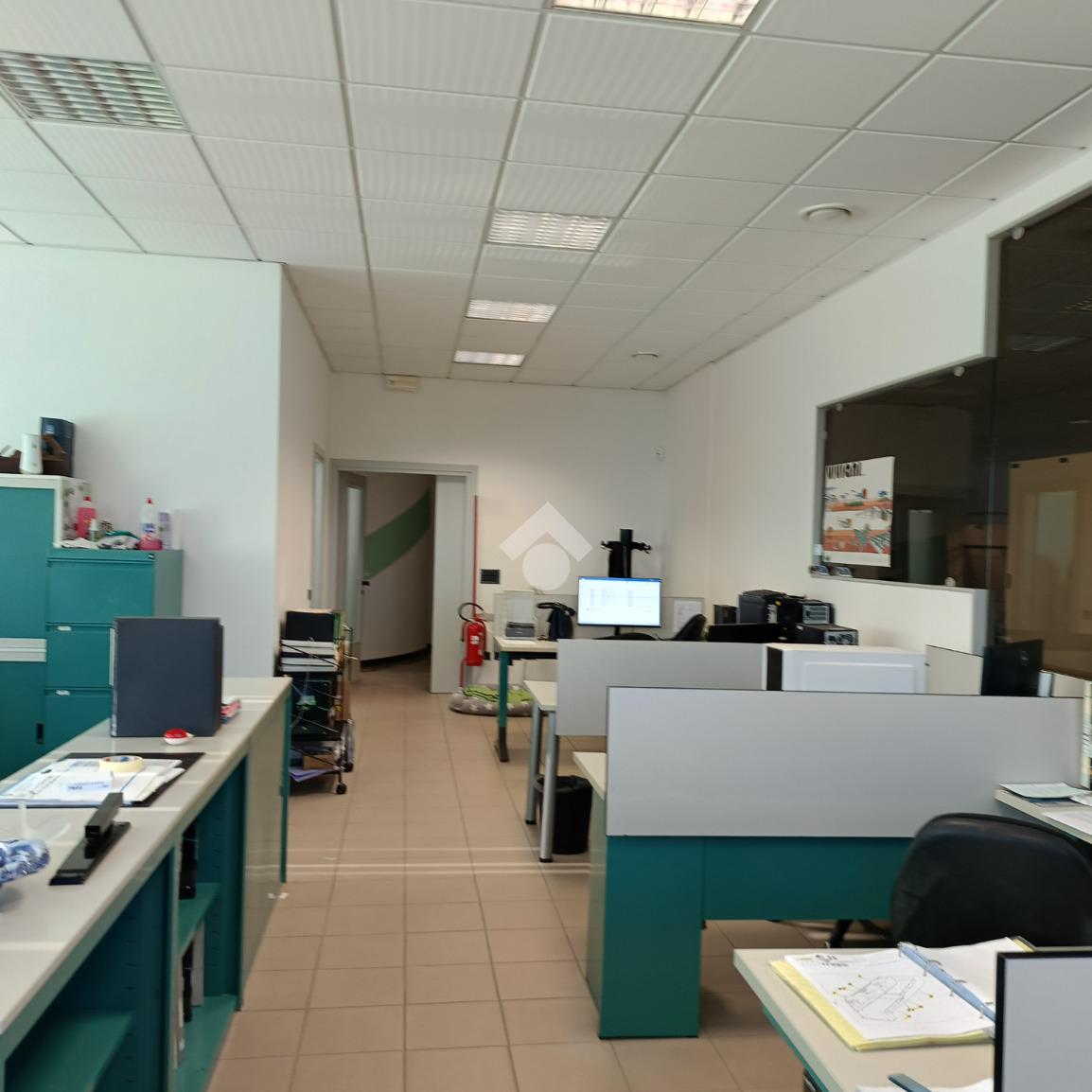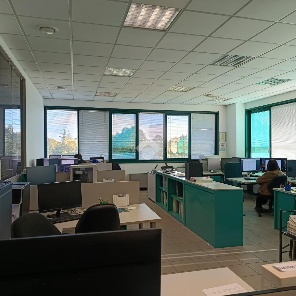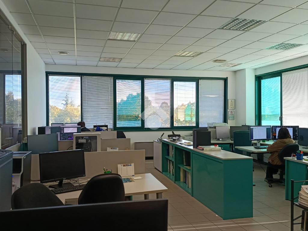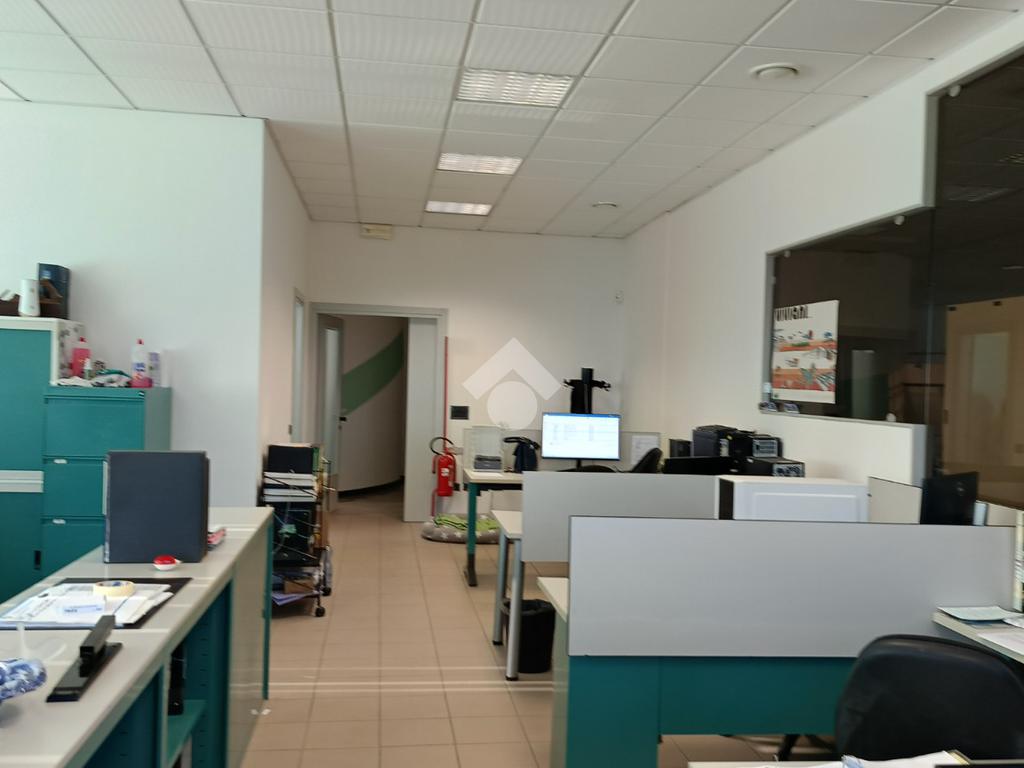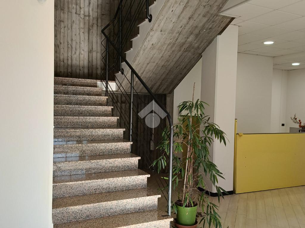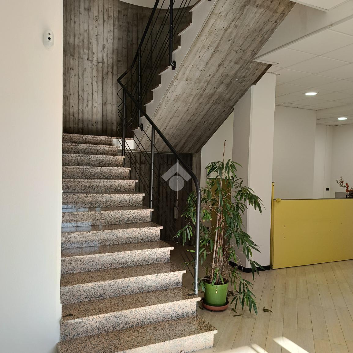 Al piano primo troviamo due ampie sale open space e 4 uffici di rappresentanza e servizi wc con antibagno nuovi e fenestrati .