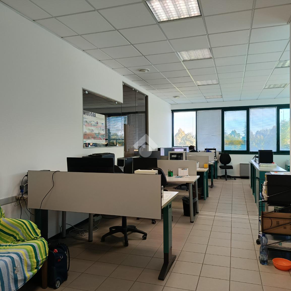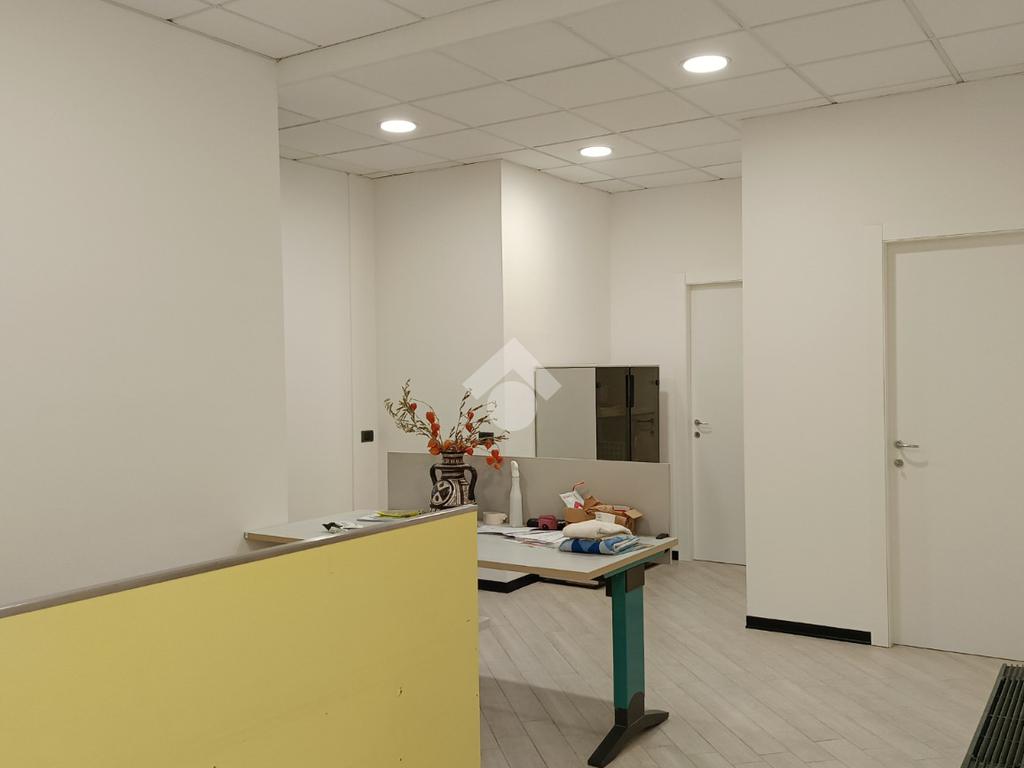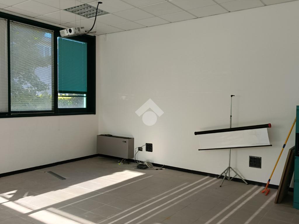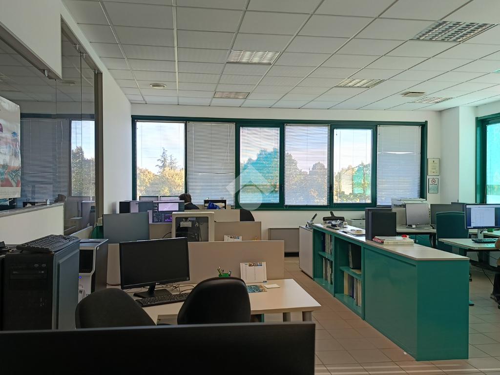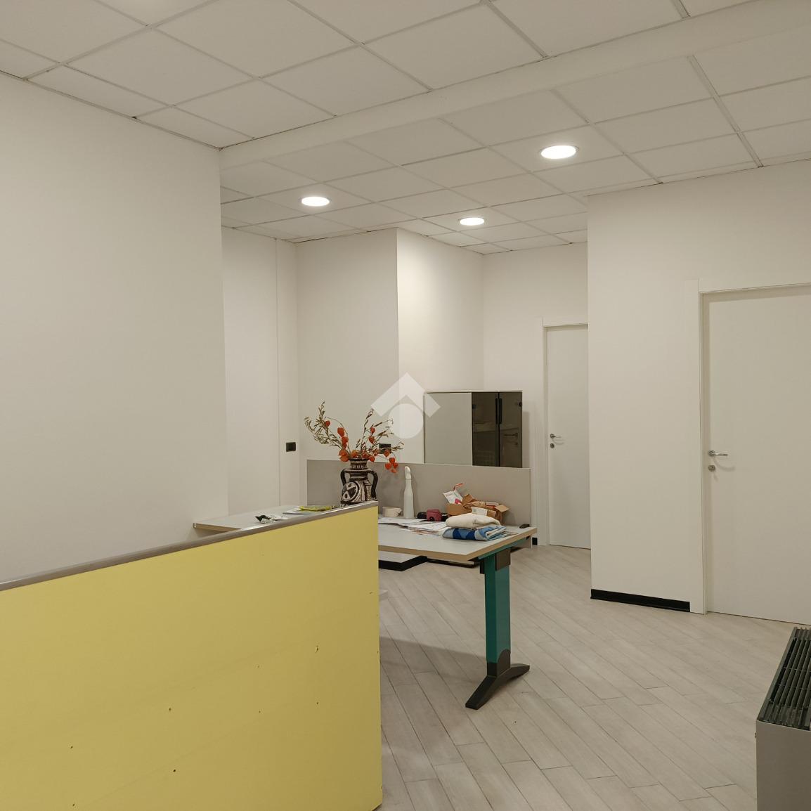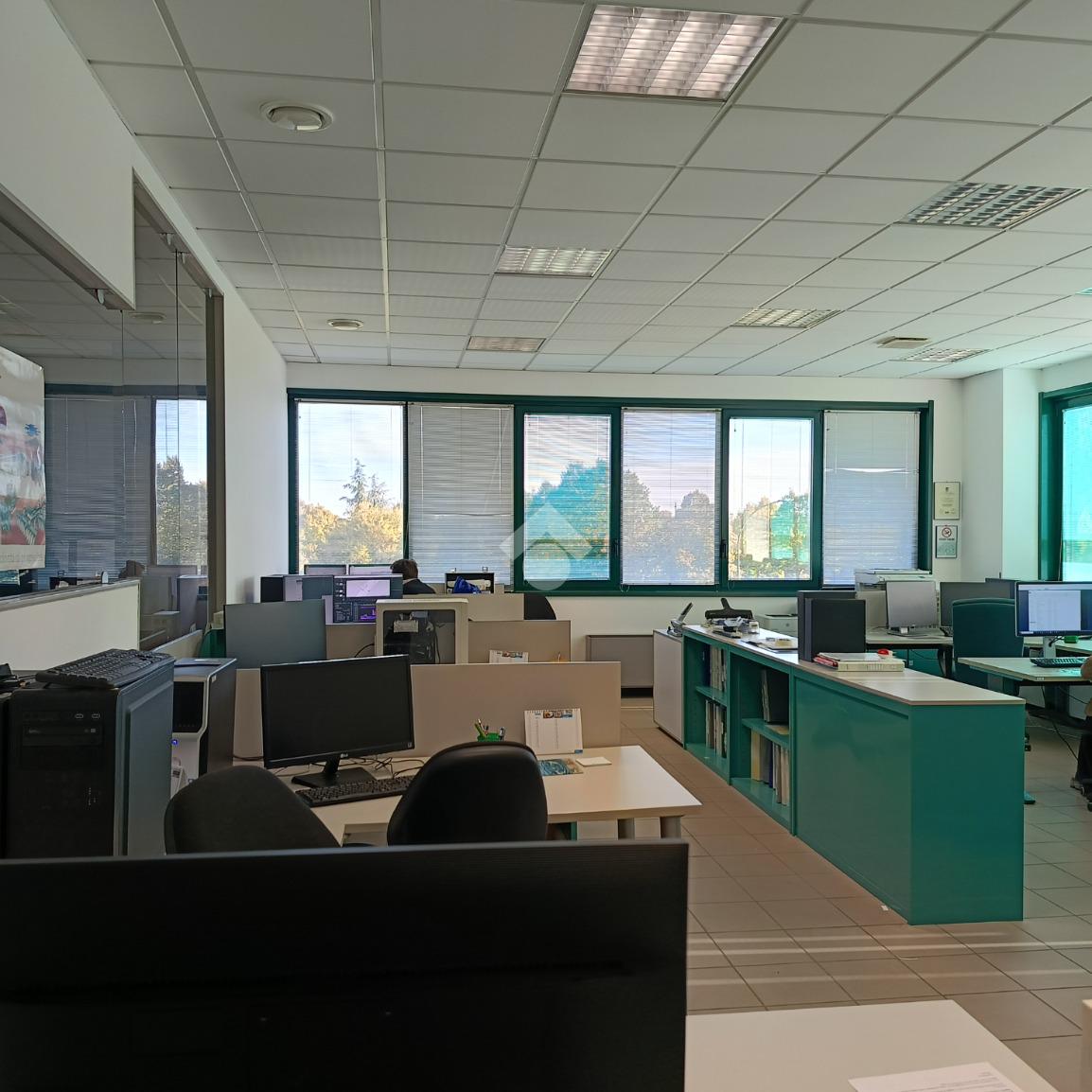 Al piano primo troviamo due ampie sale open space e 4 uffici di rappresentanza e servizi wc con antibagno nuovi e fenestrati .