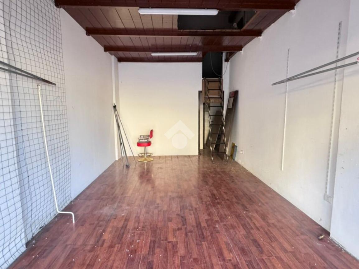Il locale è disposto su pianta rettangolare con zona di deposito soppalcata, ed il bagno in fondo al negoizio.